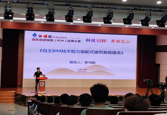 6月18日下午,在第四届安徽省高校建筑信息模型(BIM)应用大赛开幕前期,建筑工程学院邀请了北京构力科技有限公司建筑工业化软件事业部总经理、高级工程师李书阳在校图书馆多功能报告厅为师生作了一场精彩的BIM技术报告会。报告会由建筑工程学院院长方从严主持,学院党政班子、相关专业教师和学生170余人参加了报告会。