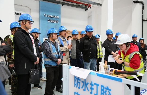 本次培训通过理论课堂教学、实地建筑操作等形式组成,涵盖装配式混凝土施工技术各方面,其中包括灌浆和吊装的基础知识讲解、打胶的材料选择、分仓灌浆技术演练等。培训过程中,专业指导老师认真讲解施工不同时间需要注意的各种安全操作事项,企业员工认真聆听并积极提出相关疑问。
