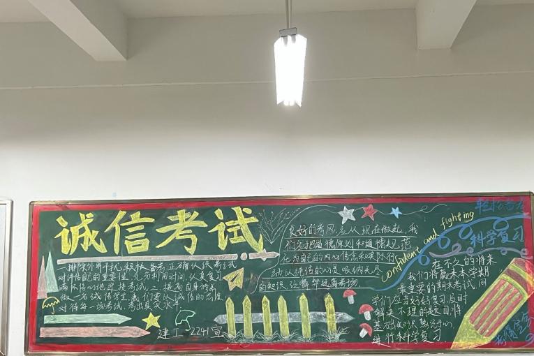 活动中,同学们以“诚信考试”为中心主题,围绕考试纪律、诚信考试重要性、备考建议等多个方面进行精心创作,设计出一幅幅色彩鲜明和具有教育意义的黑板报,全方位、多角度的宣传诚信在日常生活中的的重要性以及诚信考试对当代大学生的重要意义,引导同学们自觉遵守考试规则,诚信考试,彰显了学院学子朝气蓬勃、积极向上的精神风貌。