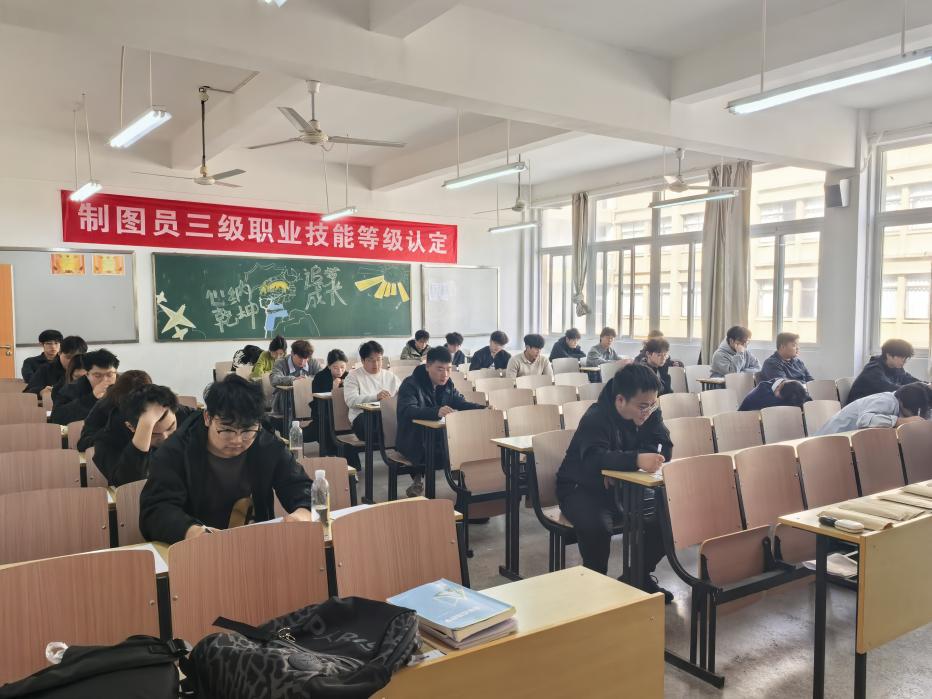 本次考工鉴定紧密结合行业实际需求,设置了理论知识笔试与现场实操考核两大模块。理论部分着重考查学生对专业基础知识的掌握程度,实操环节则模拟真实工作场景,检验学生在工程制图、仪器操作、数据处理等方面的综合应用能力。整个考核过程组织有序、纪律严明,学生们沉着应考、操作规范,充分体现了建筑工程学院学子严谨务实、精益求精的学风。