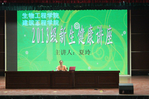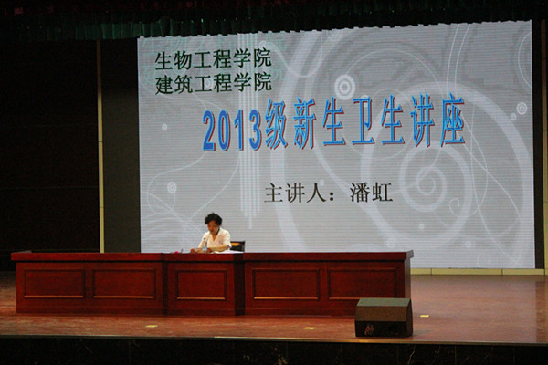 为了让2013级新生尽快地了解和适应大学生活,找到在大学三年中的奋斗目标,生物工程学院和建筑工程学院于9月16日上午9点30分,在学校大礼堂安排了大学生卫生健康讲座、心理健康讲座和大学生创业讲座。本次活动由建筑工程学院2013级新生辅导员李娟老师主持,出席活动的老师有生物工程学院辅导员叶卓然、张海燕老师和建筑工程学院辅导员徐楠、姚磊、李蓉和刘竹青老师。