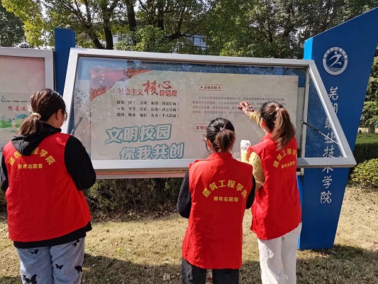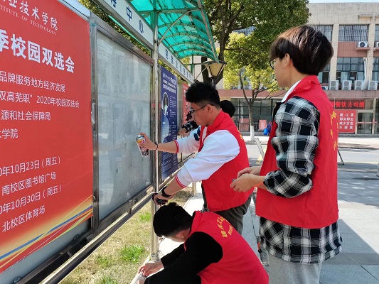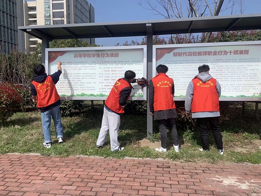 为了进一步美化学院文明传播的窗口,提高学校宣传栏的宣传效果和环境整洁。2021年3月4日中午十二点半,我院青年志愿者协会举办了一场“树文明先锋,创和谐校园”——校园清理活动,全院在校学生参加了此次活动。