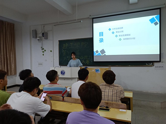 为使学生个人对未来职业走向和职业发展有更清晰的认识,同时提高学生的综合素质、避免学习的盲目和被动,帮助同学们对自己的职业目标和实施策略更加明了,建筑工程学院于2021年5月19号在西一202教室举办了大学生职业生涯规划设计大赛。