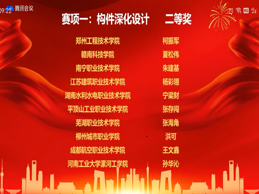 本次大赛(学生组)“装配式建筑构件深化设计”赛项全国参赛共147名选手,我校建筑工程学院张海角同学获全国二等奖,李子莹、方文明获评优秀指导教师。
