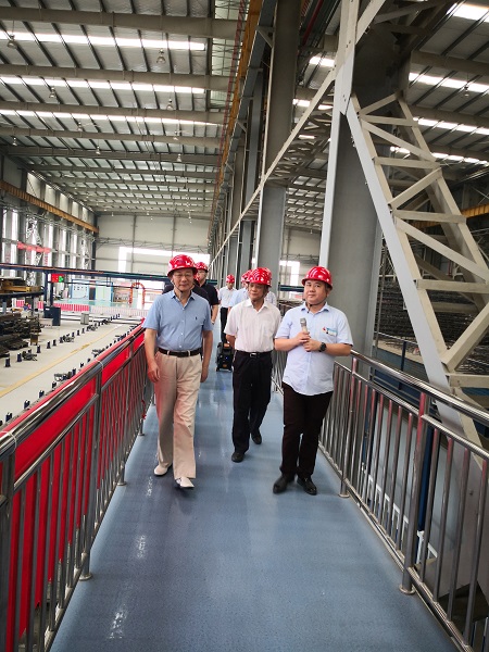 在集团纪委书记宋志华的陪同下,汪斌一行参观了安徽建工建筑工业公司产业化基地生产车间、绿色建造展厅,了解了企业发展历程、战略布局等情况,重点考察了解了企业智能化生产情况以及工厂智能系统模块集成、自动化流水线生产、先进装配构件生产设备等,并通过智能化工厂大数据电子看板,实时了解企业部品部件生产相关数据采集情况。